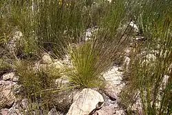 Schoenus pseudoloreus is a species in family Cyperaceae, tribe Schoeneae.[3] Other notable genera in tribe Schoeneae include Lepidosperma, Oreobolus, Costularia, Tetraria and Gahnia.[3][4][5] The most closely related species to S. pseudoloreus are other southern African Schoenus species, specifically, species in the Schoenus compar – Schoenus pictus group.[1]