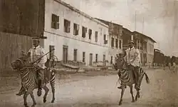 Overall strength was 300 European recruits and 2,472 Africans, specifically 68 combatant officers, 60 warrant officers and NCOs, 132 non-combatant medical officers, civilian administrators, ammunition technicians, and 2 African officers and 184 African NCOs and 2,286 Askari.[5][6] Lastly there was the Polizeitruppe, formed in 1909, with 60 German and around 2,000 experienced askari which was reintegrated into the Schutztruppe as soon as war erupted.[7]