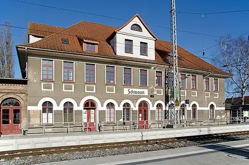 Schwaan station is a railway station in the municipality of Schwaan, located in the Rostock district in Mecklenburg-Vorpommern, Germany.