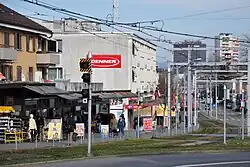 Winterthurerstrasse as seen from Schwamendingerplatz, Glattzentrum in Wallisellen in the background