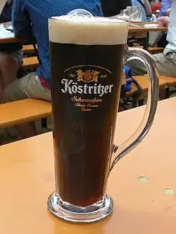 Schwarzbier (German: [ˈʃvaʁt͡sˌbiːɐ̯] ⓘlit. 'black beer') is a dark lager that originated in Germany.[1] It has an opaque, black colour with hints of chocolate or coffee flavours, and is generally around 5% ABV.[2] It is similar to stout in that it is made from roasted malt, which gives it its dark colour.[2]
