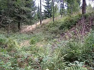 The Schwedenschanze was built during the Thirty Years' War in 1632/1633 and is the oldest schanze on the top of the pass at the Zuflucht. It consisted of a square with bulwarks at the corners and was designed for a crew of 400 to 500 men. It was supposed to secure the Oppenauer Steige from above, but it was unfavorably laid out because the opponent could approach the hill unseen due to the surrounding forests and hilly terrain.[3]