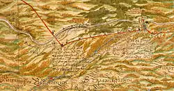 The Württemberg field camp in front of the Refuge Hotel, which would later be known as the Schwedenschanze, has its origins in 1593 at the time of the Strasbourg Bishops' War. The Duke of Württemberg had the western border of his country guarded by a permanent garrison stationed in the field camp. Many references in old maps and sources suggest that this encampment was in the same place as the Schwedenschanze.[4]