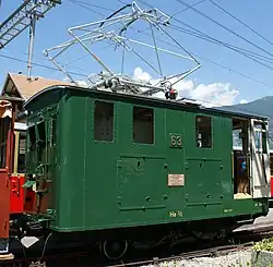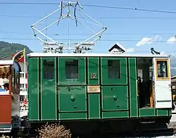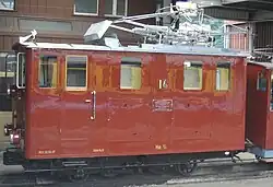 Operated the first electric service on the Schynige Platte line; a trial run in October 1913. Has been refurbished and carries a colour scheme representative of that period.[2]