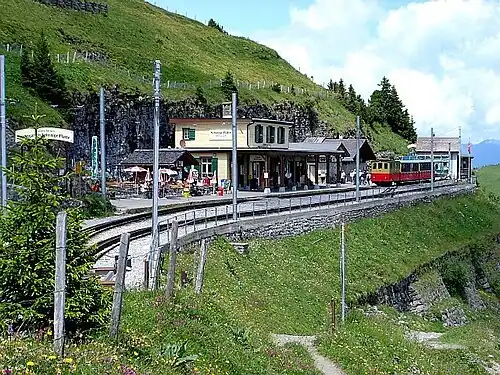 The Schynige Platte Railway (German: Schynige Platte-Bahn, SPB) is a mountain railway in the Bernese Highlands area of Switzerland, which connects the town of Wilderswil, near Interlaken, with the famous wildflower gardens of the Schynige Platte.[1][2][3]