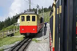 The line still operates one of its original steam locomotives, together with the four electric locomotives built for the line's electrification. A number of additional similar locomotives, together with matching coaches, were bought from the Wengernalpbahn but had (until the recent delivery of additional train sets) often returned to this line to help in winter sports traffic.[5]