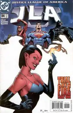 Scorch later helps Martian Manhunter overcome his weakness to fire, but inadvertently releases his repressed Fernus personality. Fernus attacks Scorch and renders her comatose.[4]