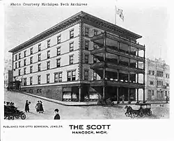 7. ^ a b c Hauglie, Kurt (April 26, 2008). "Scott Hotel gets new life as apartment building" (PDF). The Daily Mining Gazette. Archived from the original (PDF) on May 25, 2012. Retrieved December 27, 2011.