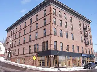 The Scott Hotel is a former hotel located at 101 East Quincy Street in Hancock, Michigan,[1] originally known as the Hotel Scott.[2] As of 2009, it is also known as the Scott Building.[3] The five-story building is in the Renaissance Revival style, constructed of tan brick and trimmed with Lake Superior Sandstone.[1] The building is listed as a Michigan State Historic Site and is a contributing property of the Quincy Street Historic District.