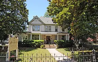 Scott House, also known as The Magnolia House, is a historic home located at Hampton, Virginia. It was built in 1889, and is a two-story, five-bay, stuccoed wood-frame Queen Anne style dwelling. It has a steeply pitched cross-gable roof and features cornice dentils, a bracketed cornice, elaborate gable ornamentation, an art glass transom over the raised panel double door, and 14 fluted Doric order columns that support a wrap-around porch.[3]