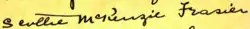 Mary Scott (nickname, "Scottie") McKenzie was born in Talladega, Alabama, September 7, 1884.[3][4] She was the daughter of William and Leila (Hood) McKenzie,[5] of Talladega, the former a Confederate soldier having enlisted at the age of seventeen. She was a granddaughter of Dr. Robert and Frances (Weisinger) Hood, of Cahaba, Alabama, the former a Confederate soldier who died during the Civil War with pneumonia, the latter, a descendant of Lawrence Washington, and of Dr. Henry and Amanda (Talmadge) McKenzie, the former a graduate of the Transylvania University and one of the first settlers of Talladega. She was a great-granddaughter of Thomas Dewitt and Tabitha (Washburn) Talmadge, of Jefferson County, Kentucky, and of Murdock and Rebecca (Tyson) McKenzie, the former a native of Scotland who emigrated to the U.S. in 1802, settling in Chatham County, North Carolina. She was a great-great-granddaughter of Kenneth and Christie McKenzie, of Scotland, and of Campbell and Tabitha (Dulaney) Washburn, the former an American Revolutionary War soldier, and of Berry and Ann Tyson, of Moore County, North Carolina. She was a great-great-great-granddaughter of Daniel and Margaret Dulaney, the former founded a town in Maryland which bears his name. The Dulaneys were among the most prominent of the members of the Maryland colony, one of that name having been the provincial secretary. The first member of the Hood family located in Virginia and married an Arundel of the English family of that name.[1] Frasier's siblings were Clarence, Margret, Frances, William, Robert, and Alleen.[4]