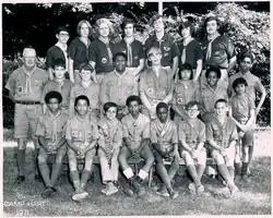 During its first fifty years, the BSA struggled with minority communities because they were not seen as a source of strong membership. At the end of the 1960s, the national leadership saw the underserved communities, primarily in urban areas, and created their new "Urban Emphasis."[14] Scouting in the South remained largely segregated until World War II.[15] The BSA's modernization and new "urban emphasis" was consistent with similar trends in Scouting all over the world starting in the 1960s. Much of these changes could be seen in the 8th Edition of the Boy Scout Handbook used from 1972 - 79. The Urban Emphasis program, and some other Hispanic outreach initiatives,[16] were the forerunner of today's "Scoutreach."