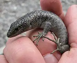 The scree skink (Oligosoma waimatense) is a species of skink native to several sites throughout the South Island of New Zealand. A member of the family Scincidae, it was described by Geoff Patterson in 1997.[2] It favours rocky habitats, particularly greywacke screes. Threats to scree skinks include predation by introduced mammals, weed encroachment, human interference and (for stream bed populations) severe flood events.[3]