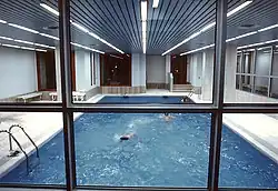 The main body of the building houses all the facilities dedicated to educational activities, such as the classrooms, the auditorium, the library, the laboratories, the publishing centre and the multimedia centre. It also hosts the offices of the school staff. On the right of the central body with respect to the main entrance there is the block of the initial 120 residences, with an additional block of 80 residences to the left.
