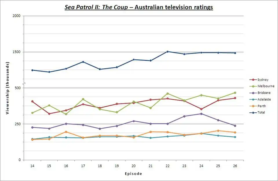 Though advertised by the Nine Network as Sea Patrol II: The Coup,[1] episodes themselves bore no title other than Sea Patrol, and the ISAN number indicated that the episodes were merely episodes 14–26 of Sea Patrol.