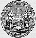 The early history of the seal is obscure. [1] Based on the New Orleans Public Library, it is known that on February 17, 1805 the Legislative Council of the Territory of Orleans authorized the mayor to procure and use a seal on official acts and documents. But when the city was divided into three municipalities in 1836, each subdivision adopted a seal of its own.[2][3] When the city was reunited in 1852, the seal was adopted.[4]