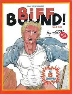 In the 1970s he did both softcore and hardcore illustrations for erotic novels and collections of short stories published by Larry Townsend, and his Leatherman’s Handbook.[2] In the mid 1970s he created stand-alone wordless hardcore comics Biff and Biff Bound for San Francisco publisher Le Salon, which featured centerfolds with 10 and 15 men having sex, respectively.[2] During this time he produced eighteen 10-page comics stories for hardcore photo-story magazines published by Nova Studios, which were reprinted in Meatmen.[2] In the 1980s he also did art direction for some of Nova's porn films and videos.