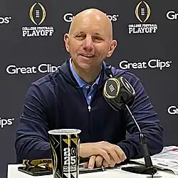![]() McDonough talking to press ahead of the 2025 CFP National Championship. | |