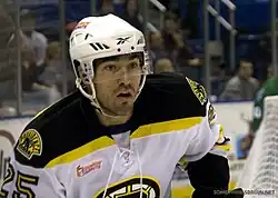 Zimmerman played Major junior with the Spokane Chiefs of the Western Hockey League (WHL). He played four season with Spokane registering 10 goals and 59 points to go with 165 PIMs in 270 games.[1] He is brother of Washington nationals player Ryan Zimmerman He was drafted in 2005 by the New Jersey Devils in the sixth round (170th overall). After seeing time in the Devils farm system he was traded in September 2008 from New Jersey to the Phoenix Coyotes. New Jersey received Kevin Cormier in exchange for Zimmerman.[1] He attended Coyotes training camp that same year, but did not make the team and was assigned to the minor leagues.[2] In the minors he split time between Phoenix's American Hockey League (AHL) affiliate the San Antonio Rampage and their Central Hockey League (CHL) affiliate the Arizona Sundogs. Zimmerman recorded 2 goals and 5 points in 56 games with the two clubs.[3] He again participated in Coyotes training camp the following season, but was once again sent to the minors.[4] He played in 72 games during the year for the Rampage and improved his point total to 9 and added a +13 rating (up from a combined -10 the season before).[3] At the NHL trade deadline Zimmerman, along with a sixth round pick in the 2010 draft, was traded by Phoenix to the Vancouver Canucks in exchange for Mathieu Schneider.[5]