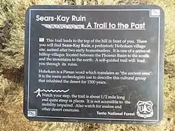 The Sears-Kay Ruin are the remains of what once was a fortification of the Hohokam culture. The ruins are located in the area of the Tonto National Forest just outside of the town of Carefree, Arizona. On November 24, 1995, it was listed in the National Register of Historic Places.