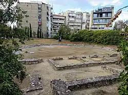 The theatre was left in ruins in the Middle Ages, when a Byzantine church dedicated to the Holy Wisdom or to Saint Paraskevi was erected in its place.[2] The church was in turn replaced by the mosque of Hasan Bey was erected on the site during the Ottoman period.[2] The Pefkakia hill was levelled in the 1950s to provide space for housing construction.[2]