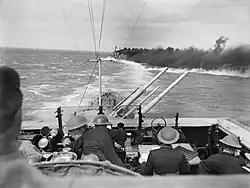 - ^ Llewellyn, p. 43: "The shell hit the starboard side of the Air Defense position, putting it out of action, also W/T and radar. One officer and fourteen ratings were killed; one officer and four ratings were seriously wounded. Splinters from near misses killed one rating and caused superficial damage."