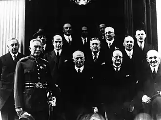 The Republic's foreign policy was largely shaped by the Premiership of Eleftherios Venizelos. Before his re-ascention to power in the 1928 legislative elections, Greece was faced with significant obstacles in its foreign policy: growing claims by Yugoslavia on Thessaloniki, bad relations with Bulgaria and Turkey, while relations with the Great Powers were at their lowest point since Greece was established in 1832.[29] In co-operation with Mustafa Kemal Atatürk, as well as İsmet İnönü's government, a series of treaties were signed between Greece and Turkey in 1930 which, in effect, restored Greek-Turkish relations and established a de facto alliance between the two countries.[30] As part of these treaties, Greece and Turkey agreed that the Treaty of Lausanne would be the final settlement of their respective borders, while they also pledged that they would not join opposing military or economic alliances and to stop immediately their naval arms race.[30] The good relations established by the Republic would last until the 1950s.