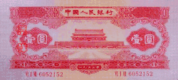 The second series of Renminbi banknotes was introduced on March 1, 1955 (but dated 1953). Together with the introduction of the second series, the decimal point was moved 4 places to the left. As a result, one first series ¥10,000 note is equivalent to one second series ¥1 note.