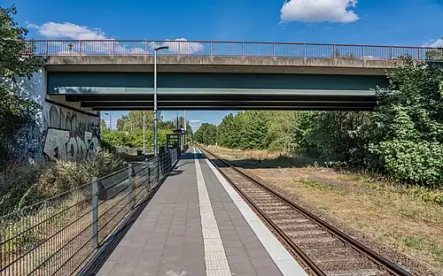 Seefeld (Mark) station is a railway station in the Seefeld district of the municipality of Werneuchen, located in the Barnim district in Brandenburg, Germany. It is served by the Regionalbahn service RB 25 of the Niederbarnimer Eisenbahn.
