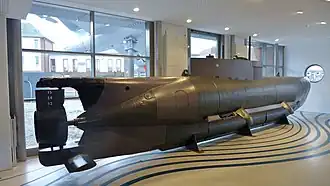 ![]() A Seehund midget submarine, on display at the Deutsches Marinemuseum, Wilhelmshaven, Lower Saxony, Germany