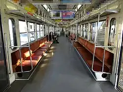 Seating consisted of longitudinal bench seating throughout. Priority seats were provided at the end of each car.[2]