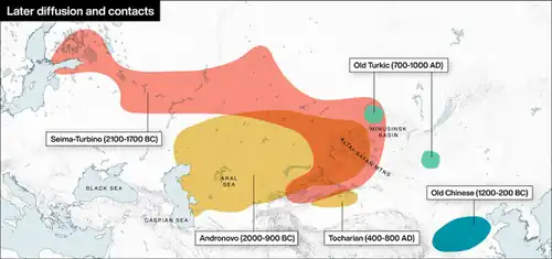 ![]() The Seima-Turbino phenomenon ( ) in Eurasia.[1]