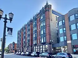 A cable car line was built from Downtown Saint Paul to Selby and St. Albans in 1887. It opened January 16, 1888. The line traveled along Broadway, Fourth, and Third streets before climbing the bluff and traveling along Selby. The line was extended to Fairview Avenue in 1890.[6] In the 1890s, Selby Avenue outshone Grand Avenue with many more large buildings, commercial buildings, apartments and duplexes.[7]