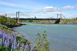 Selfoss sits on Route 1, the Icelandic ring road, and is the first major stop east of Reykjavik. The bridge over the Ölfusá river, called Ölfusárbrú, is an important link in southern Iceland, and the genesis of the town's location. The original bridge was constructed in 1891 but collapsed when a milk truck traversed the bridge in 1944. The current Ölfusá bridge was opened a year later in December 1945.