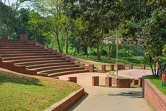 Selim Al Deen Muktamanch (commonly known as Muktamanch) is an amphitheatre at Jahangirnagar University in Savar, Bangladesh. It is located on the slope of a mound to the east of the university's Student–Teacher Center.[1] It is the first open-air theatre in South Asia to be built in the style of Ancient Greece amphitheatre.[2] It was long referred to simply as "Mukt Manch", after which it was officially named posthumously in honor of its master planner, Selim Al Deen.[2][3] Muktamanch opened in 1980 with a production of the play Shakuntala.[4]