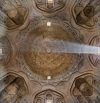 In 1092, Malik-Shah built the Jami al-Sultan Mosque in Baghdad.[102] At the capital, Isfahan, Malik-shah had constructed a madrasa, a citadel and a castle near Dizkuh.[108] Following Malik-Shah's death, the familial civil war drew attention away from religious patronage, slowing the building of madrasas and mosques.[109] Although, in 1130, the Seljuk sultan Sanjar ordered the construction of the Quthamiyya madrasa in Samarkand.[110]