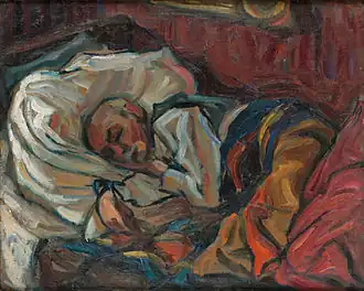 Until 1914, she moved between Riga and Munich. During the war, she travelled extensively, giving exhibitions. Finally, in 1919, she decided to settle in Fürstenfeldbruck, which had been an artists' colony since 1900. It was there she met the painter, Adolf Des Coudres, and they were married in 1921. They made a very notable pair, as she was twenty years younger than him and much taller.[1] The marriage was short, however, as he died late in 1924.