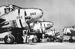 On August 11, a motor convoy from Turner Army Airfield, Albany, Georgia, brought the cadres of the first squadrons of ground troops to the post. On August 15, the AAF Pre-Flight School(Bombardier-Navigator) was transferred to Selman AAF from Maxwell Field, Alabama. The day after the arrival of the staff, enlisted men and cadets of the Pre-Flight School, classes were in session in improvised academic halls. The cadets had lost only one day of classes in moving nearly 400 miles, with the day spent on the train. Vultee BT-13 Valiants were flown for basic flying training, and TC-47 Skytrains and TC-46 Commandos were used beginning in late 1944 for various administrative needs by the Base Flight.