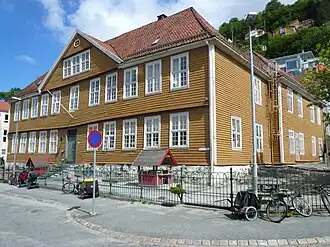 The building dates from 1752 and is Bergen's largest wooden building from the 1700s. The school was funded by the jurist Melchior Falch, in gratitude for which he was made the district magistrate for Sunnmøre in 1754.[2]