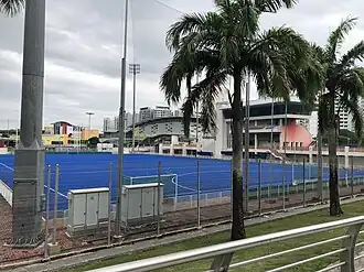 The sports centre also includes a two-pitch hockey stadium,[10] which was used as a competition venue for hockey during the 2010 Summer Youth Olympics.[11]