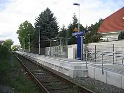 The former Schloss Neuhaus station was reduced in the early 1980s to a siding.[6] This continues to be connected for rail freight to the Benteler works. A new Schloss Neuhaus station was opened on 30 October 2008[7] between Schatenweg and Hatzfelder Straße with access to Schatenweg; the access from Hatzfelder Straße has not yet been completed due to problems with land acquisition.