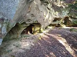 Four small caves open to the south on the slope of a hill about 89 meters above sea level on the left bank of the Ainoura River, and there is a spring in the valley below the slope, so it is believed they were used as dwellings. They were discovered by a junior high school student in 1969, and archaeological excavations began the following year and continued for 10 years by Chiba University. Stratigraphic examination indicates that there are 12 layers of soil deposited in the cave. No pottery was unearthed from the deepest layers 12 and 11 just above the cave base, but a knife-shaped stone tool was unearthed. This stone knife, with a sharp side edge made into a single blade, is a characteristic relic of the Late Paleolithic period. microblades, toryumon pottery, and ridge-pattern pottery were found in the 10th layer, and claw-shaped and push-pull pattern pottery were identified in the upper layers.