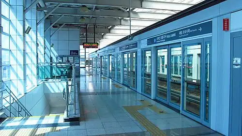 Seobusan Yutongjigu Station (Korean: 서부산유통지구역; Hanja: 西釜山流通地區驛) is a station of the BGLRT Line of Busan Metro in Daejeo-dong, Gangseo District, Busan, South Korea.