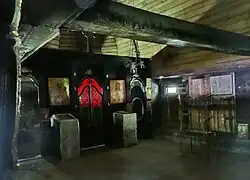 These churches were mostly located in the forests far from main roads. In order to preserve their identity and religion from the Ottoman Empire, the Orthodox residents built their churches from wood, so that they could easily overnight transfer them to other locations. The wooden churches are small structures of simple construction with authentic roof, without decoration and apses. Most of them are of skeleton type, with walls made of grooved boards and some made of logs with rectangular cross section. On the corner, the logs are connected with a flattened flap. The walls vary and rarely reached the height of a man. Also, churches did not reached the height of a trees. The roofs are very steep for faster drainage of rain water. At the corner, the faces of the roof are regularly rounded. In this way, a corner on the roof is avoided which is unsuitable for the roof, and at the same time a semi-elliptical roof of the frontal walls is obtained which provides a better protection from atmospheric effects. This additionally gives a specific esthetical vision of the structure. These buildings do not have a ceiling so the roof structure in the interior is fully visible. Openings are very small so the inside of the church is rather dark.