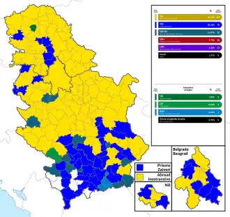 - ^ The Socialist Party of Serbia won 12 seats, the Party of United Pensioners of Serbia 5 and United Serbia (3)