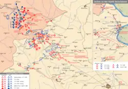 Lured by Austria-Hungary's promises of support[5] and territorial gains from Bulgaria (in return for concessions in the Western Balkans), Milan I declared war on Bulgaria on 14 November [O.S. 2 November] 1885.[6] The military strategy relied largely on surprise, as Bulgaria expected an attack from the Ottoman Empire and had moved its troops to the area near the Ottoman border, to the southeast.