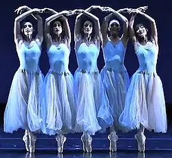 Serenade is a ballet by George Balanchine to Tchaikovsky's 1880 Serenade for Strings in C, Op. 48. Serenade is credited as being George Balanchine's first full-length ballet in America. Using the students of his newly formed School of American Ballet, Balanchine choreographed this ballet for an American audience that had not been widely exposed to ballet before.[1] Students of the School of American Ballet gave the first performance on Sunday, 10 June 1934 on the Felix M. Warburg estate in White Plains, N.Y., where Mozartiana had been danced the previous day. It was then presented by the Producing Company of the School of American Ballet on 6 December at the Avery Memorial Theatre of the Wadsworth Atheneum with sets by the painter William Littlefield. Balanchine presented the ballet as his response to the generous sponsorships he received during his immigration to America.[2] The official premiere took place on 1 March 1935[3] with the American Ballet at the Adelphi Theatre, New York, conducted by Sandor Harmati.