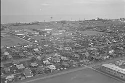 During World War II, Seria was one of the first places in Borneo to be invaded by the Imperial Japanese Army.[16] The Kawaguchi Detachment landed on 16 December 1941, just nine days after the attack on Pearl Harbor.[17] In response, the British forces destroyed the oil field to prevent it from falling into Japanese hands.[18][19] On 28 April 1945, the United States Navy launched an attack on Japanese-occupied areas in the Asia–Pacific, including Seria.[20] The town was liberated by Australian forces on 29 June 1945, but by the time they arrived, the oil field had been severely damaged and only restored to production in November that year.[21] By 1946, the original town had been completely destroyed.[7] In the post-war period, Seria's high oil productivity and the presence of Indonesian workers employed by the BMPC prompted the British to closely monitor the situation, concerned about potential labour unrest and the spread of revolutionary Indonesian ideals.[22]