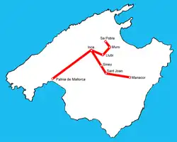 In 1977, the line Palma – Inca was the sole remnant of a network that once connected Palma with most of the island. In 2001, the section Inca – Sa Pobla reopened, followed by the section Inca – Sineu in 2002 and Sineu – Manacor in 2003.