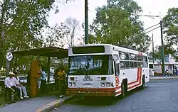 Starting in November 1997,[29] and lasting for four years, STE operated a few diesel bus routes, at the request of STV following the 1995 bankruptcy[30] of RTP's predecessor, Ruta Cien ("Route 100").[31] It accepted the transfer of 190 motorbuses to its fleet in conjunction with this,[31] but these and the bus routes were transferred to RTP in November 2001.[32] Otherwise, except for a brief period in the 1960s, STE's service has always used only electric vehicles.[29]
